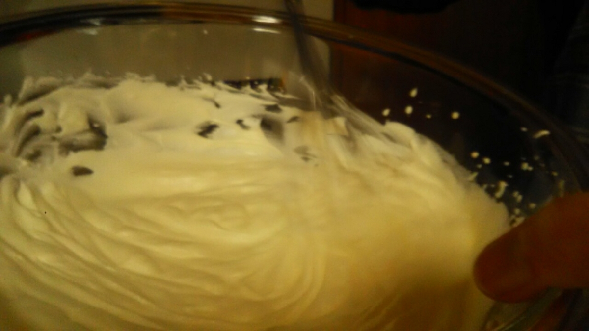 七分立てにした中沢パイセンクリームにラム酒とガリアーノで風味付け……